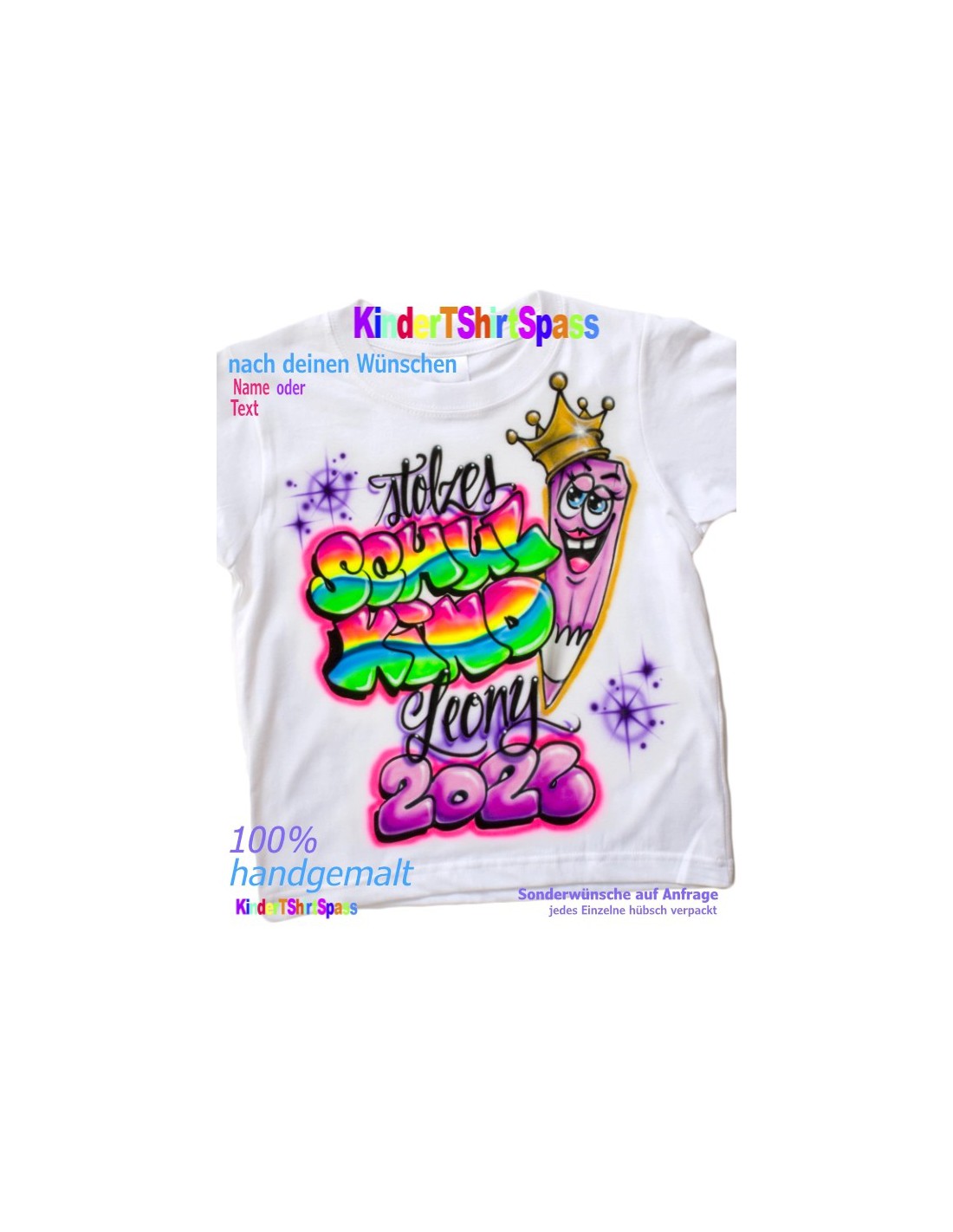 Shirt mit Name, Krone und Jahreszahl zur Einschulung. ❤️ Individuell bemalt.