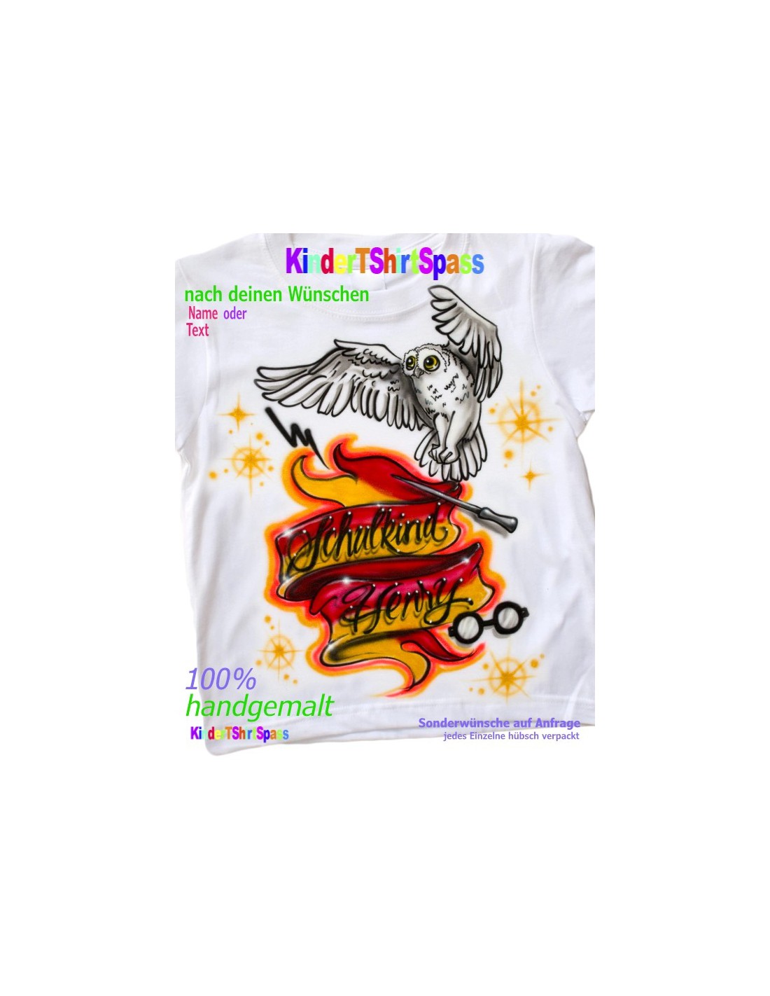 Zauberhaftes Shirt mit Eule und Zauberstab zur Einschulung. ❤️ Personalisiert.