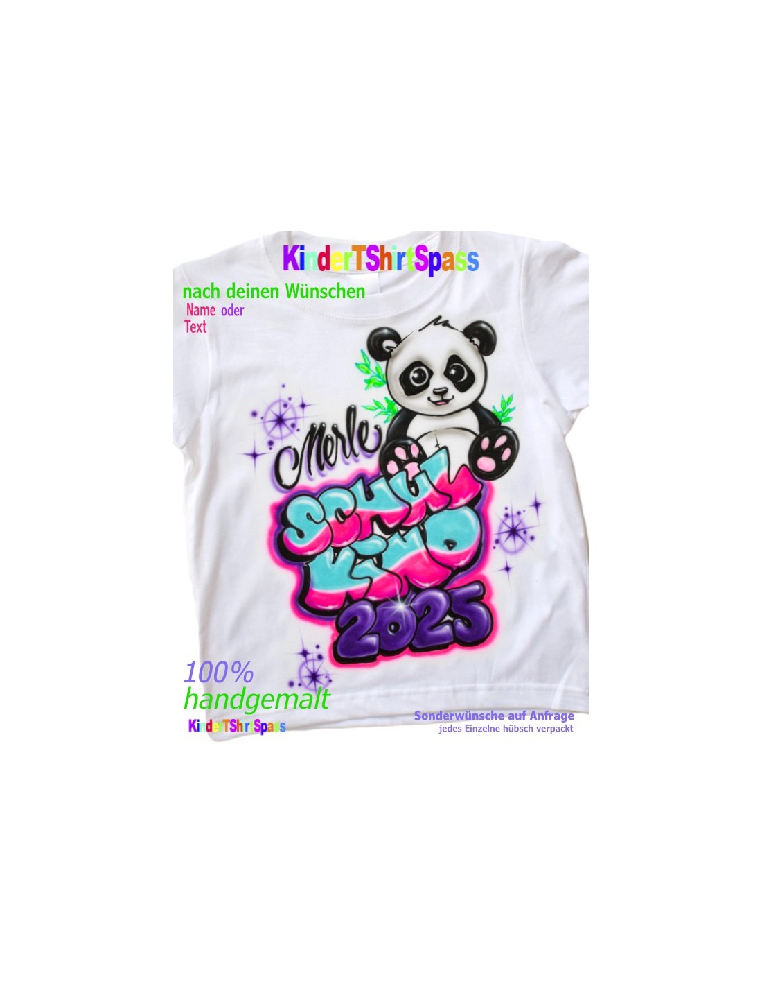 Bitte zuerst Ihren Wunschnamen speichern, damit Sie den Artikel in den Warenkorb legen könnenDieses Panda-Shirt mit Graffiti-Schfirt "Schulkind" ist ein besonderes Highlight. Individuell gestaltet und perfekt zur Einschulung.
